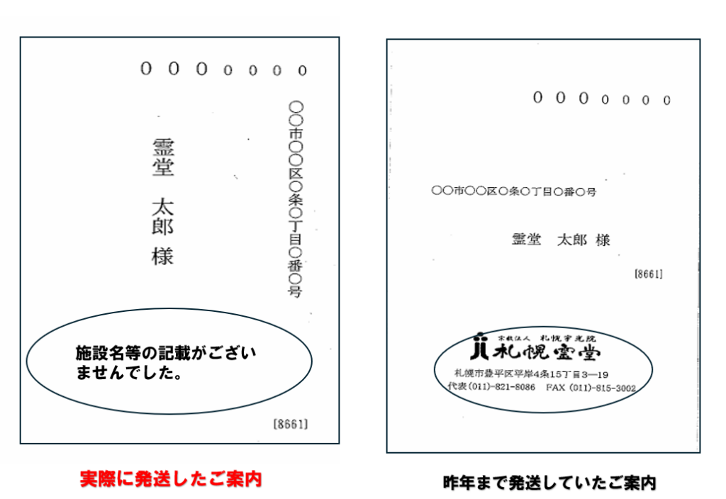 今回のご案内は、確かに札幌霊堂より発送した正式なご案内でございます。