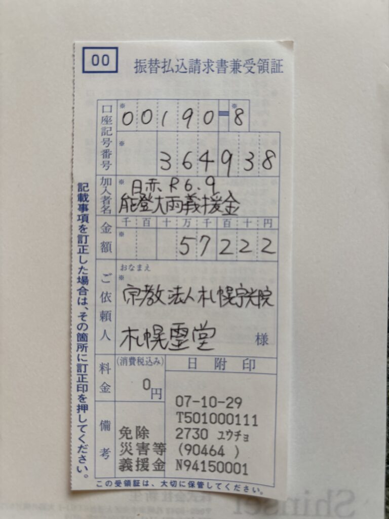 尚、札幌霊堂名で寄付しておりますが、皆様からお預かりした義援金ですので、寄付による当館での税制上の優遇措置は
